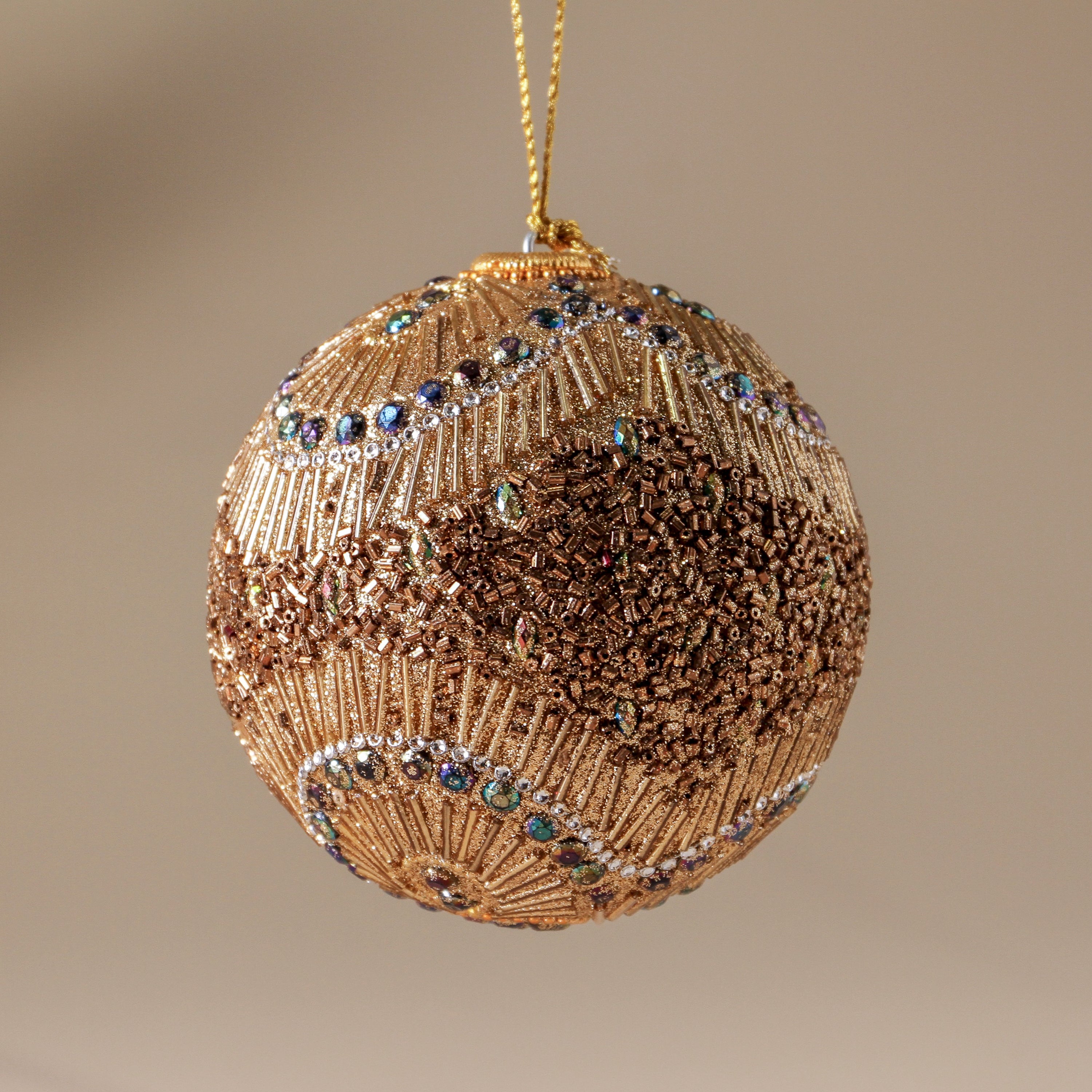 The Cinnamon Christmas Bauble is a quiet celebration of refined beauty — a piece that evokes the warmth of candlelight and the richness of tradition. Hand-embroidered with shimmering gold beads and sequins, each bauble is crafted in soft golden tones offering a palette that feels both classic and contemporary. The bronze-gold colours catch the light gently, lending your tree a sense of understated opulence. This is not just a decoration, but a moment of festive calm — designed to complement an elegant holiday palette and curated for those who treasure timeless design.