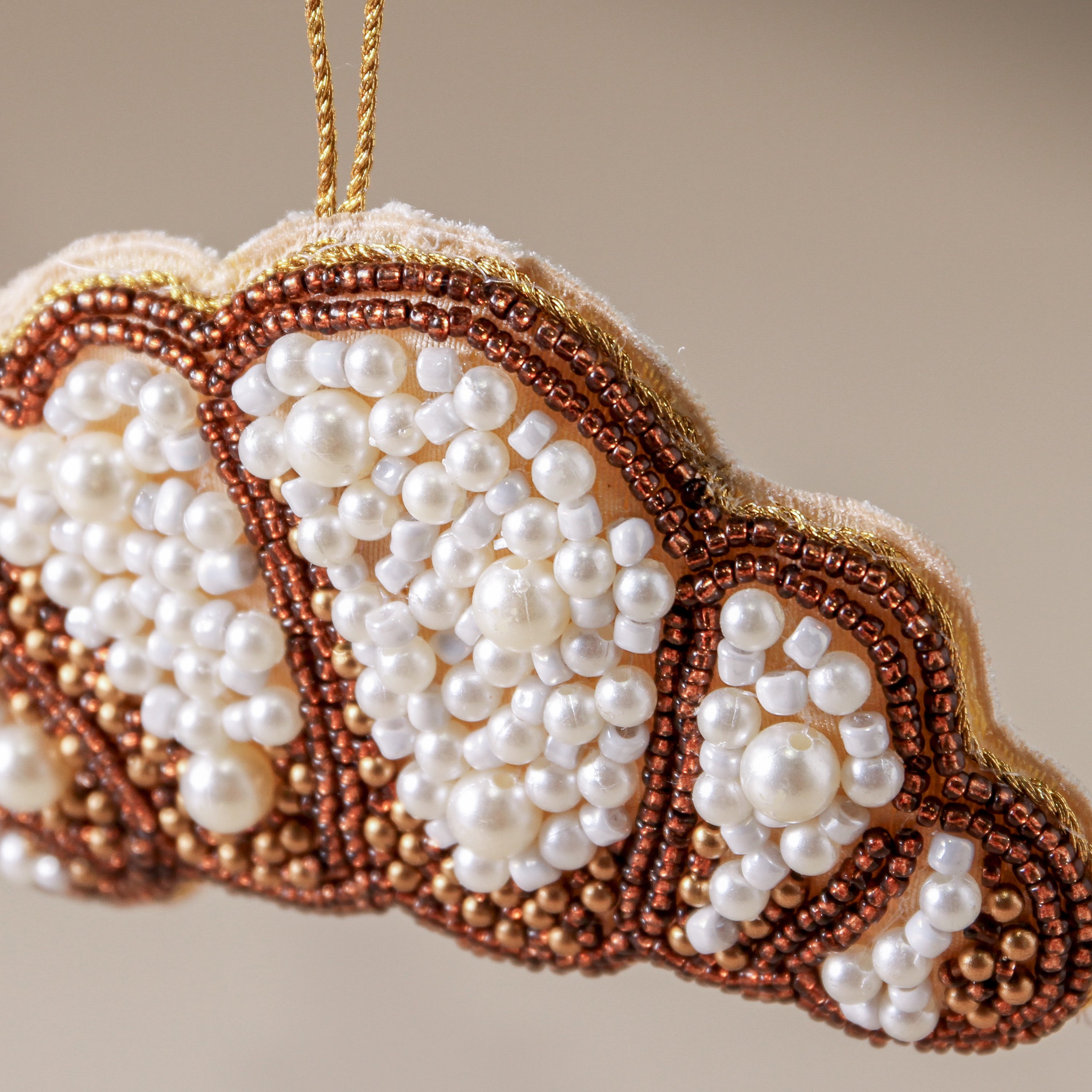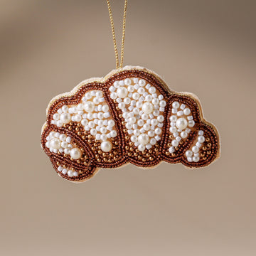 Golden brown and buttery-smooth in beaded form, the Croissant Beaded Decoration is Parisian whimsy made festive. With layers of textured seed beads and scattered white pearls to mimic the flake, this ornament is delightfully cheeky and beautifully made. It’s a quiet nod to the joy of slow mornings, buttery pastries, and a little indulgence beneath the tree.