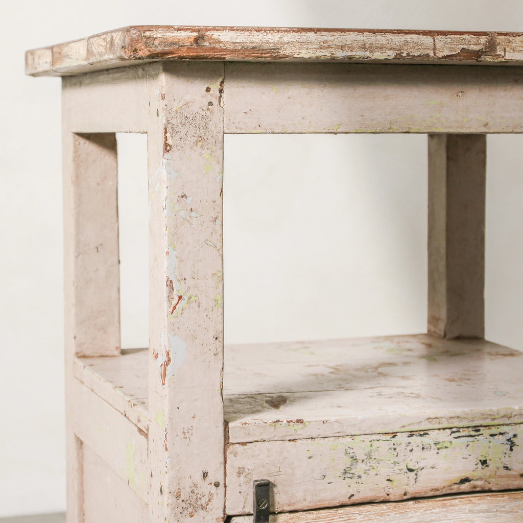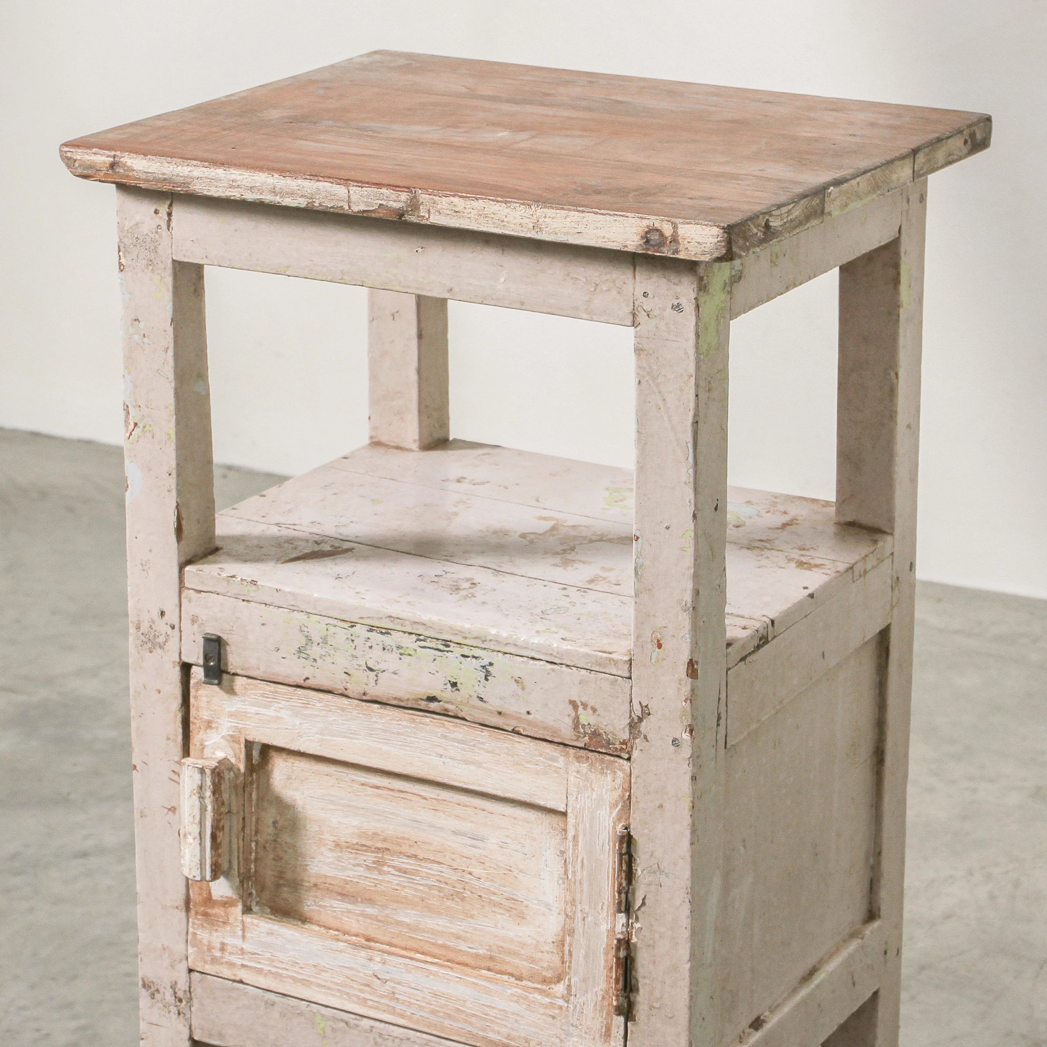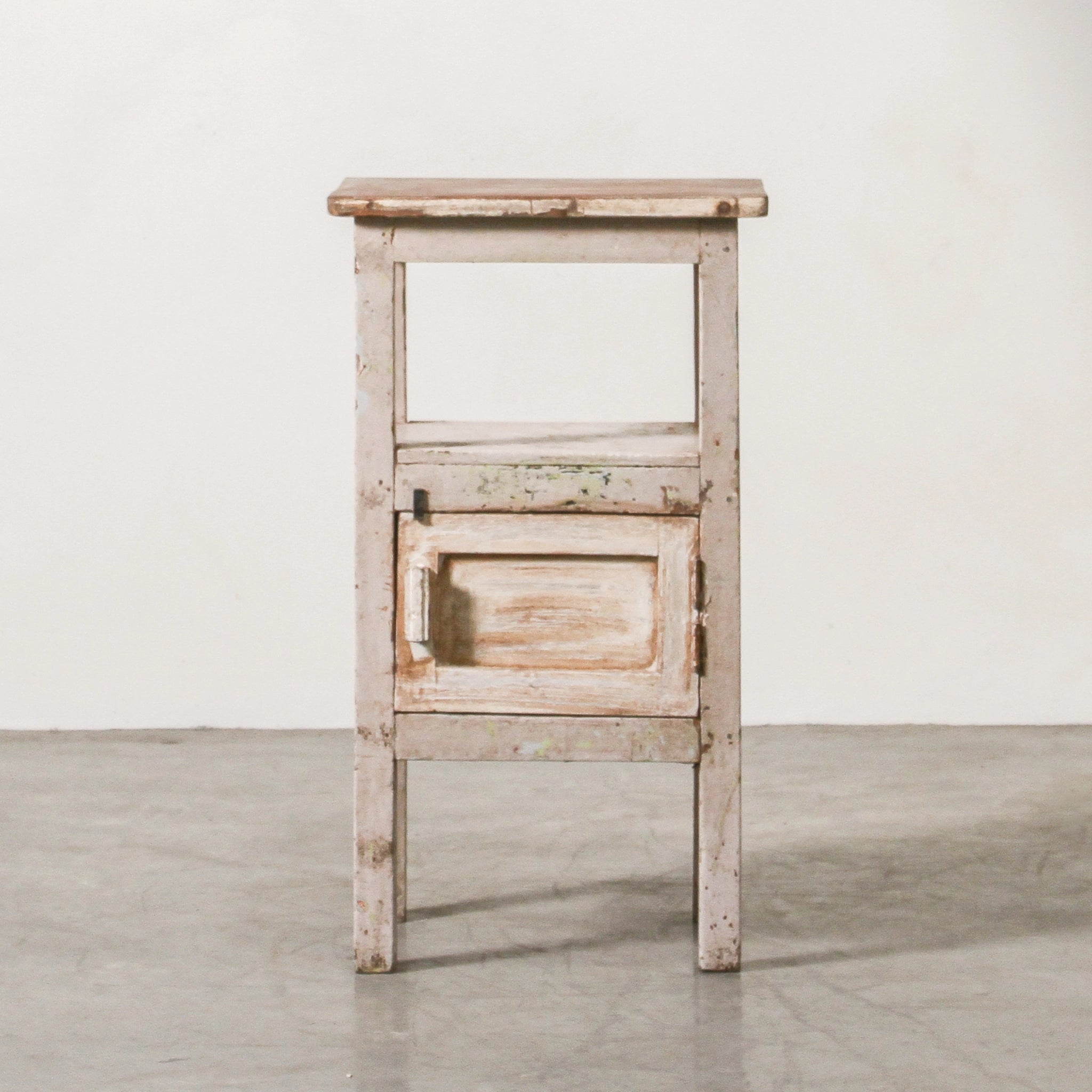 Perfect for layering, styling, or standing alone, this vintage Indian bedside table is handcrafted from solid teak and finished with a natural wax that enriches its aged grain. With 60–80 years of Rajasthani history, it retains original fittings and a warm patina that speaks of its past life as a storage cabinet. Compact and versatile, it serves beautifully as a bedside, hallway cabinet, or accent piece in modern interiors.
