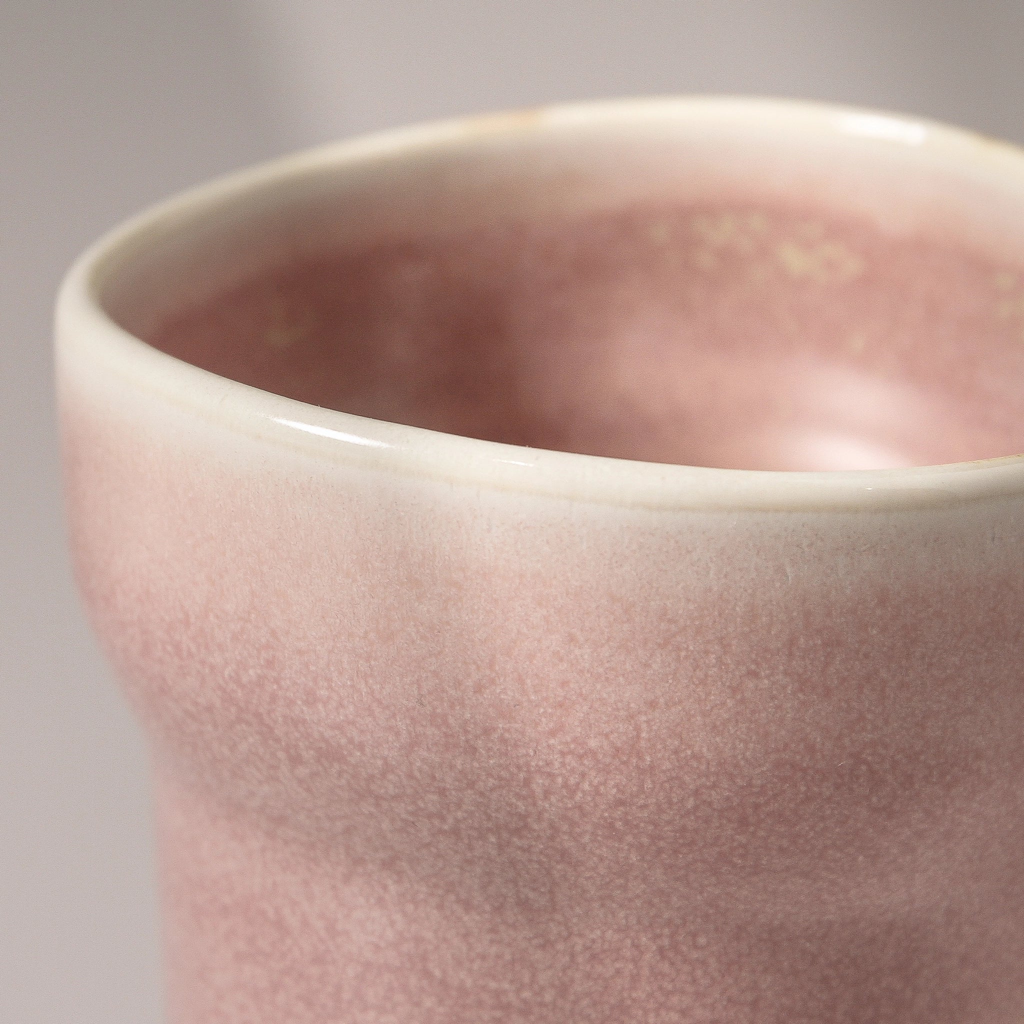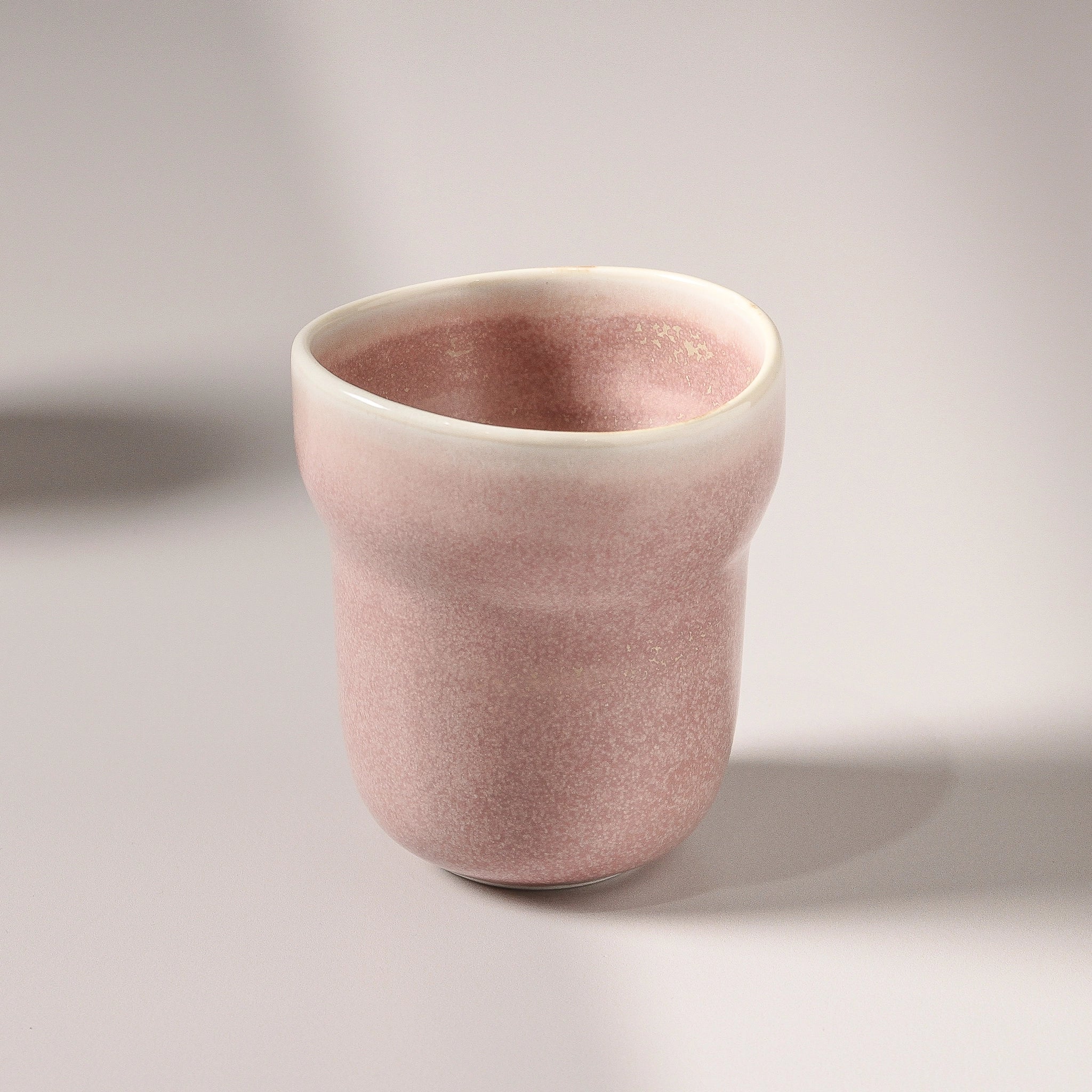 The Suiki Cup returns in a new, softly muted hue — a gentle dusty pink washed with a reactive glaze that settles into delicate, golden-rust speckles. Its surface feels quietly organic, shaped by subtle variations that honour the hand of the maker. The result is a cup that feels tender and tactile, refined yet grounded in artisanal simplicity.