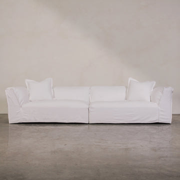 The Lumen 4 Seater Sofa is designed to bring calm to your space. With its clean silhouette and sculptural feel, it offers a spacious, grounding presence that complements both contemporary and relaxed interiors. Crafted in two generous sections, it features low, softened edges and supportive deep seats — making it ideal for everyday living and quiet moments alike.